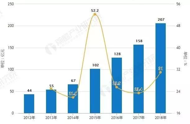 初步估计2018年中国基因检测行业市场规模有望突破200亿元,达到207亿元,同比增长31%。增势依旧强劲。